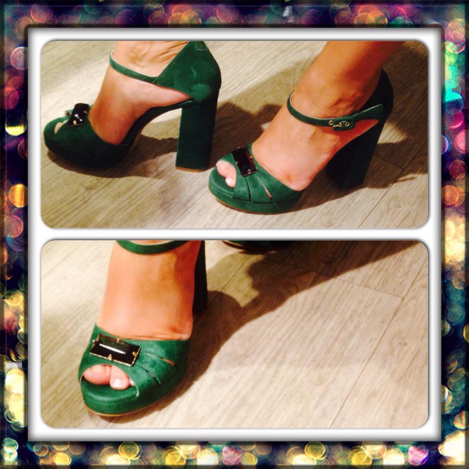 Sko fra Twin Set, rålekre platå med stor "diamant" og i den delikate grønne fargen i semsket. (disse er også fantastiske å gå med, we like! ) :)