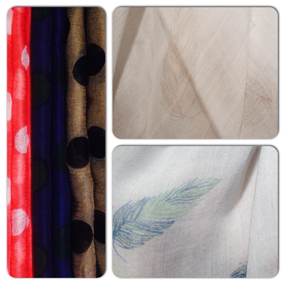 Mange skjerf med forskjellige møstre og farger fra Yaya og Twinset.. :)